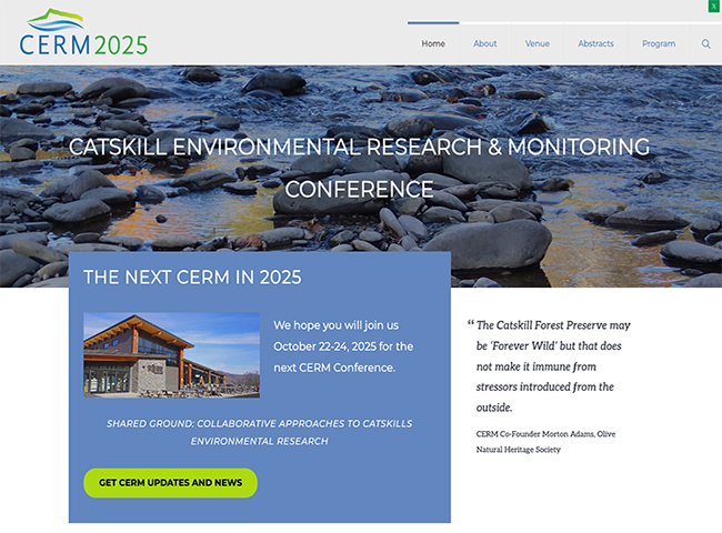 The CERM Conference is held every other year in October, and brings together government agencies, university, and non-profit partners to facilitate and share research about the Catskills. Visit the site at cermconference.org.