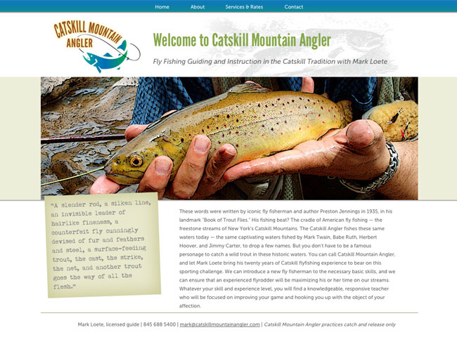 Catskill Mountain Angler is a fly fishing guiding service, specializing in guided fishing trips, fishing education and lore in the New York's Central Catskill region. Visit the site at catskillmountainangler.com.