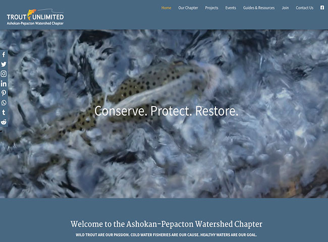 Site for the Ashokan-Pepacton Watershed Chapter of Trout Unlimited, a national sporting and environmental organization. Visit the site at apwctu.org.